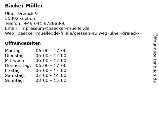 | Öffnungszeiten Bäcker Müller in Gießen anzeigen | |