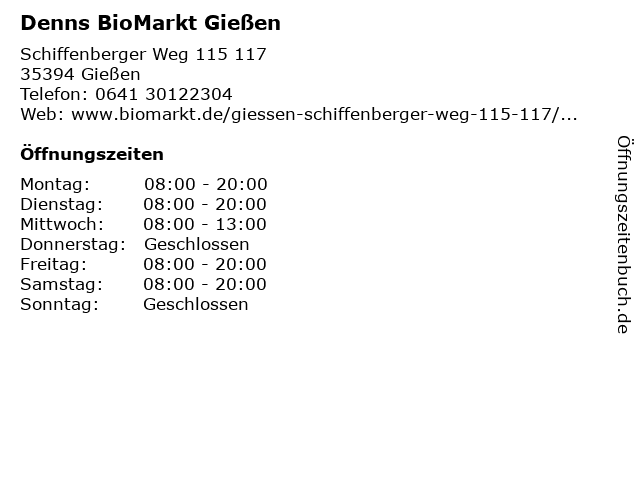 | Öffnungszeiten Denns BioMarkt Gießen in Gießen anzeigen | |