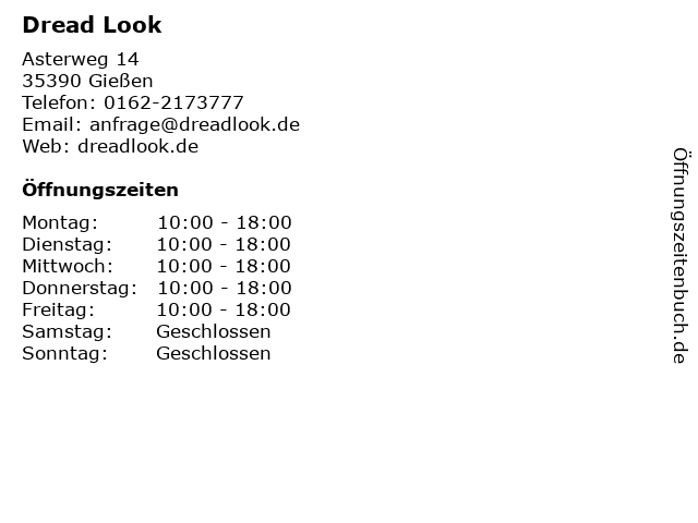 | Öffnungszeiten Dread Look in Gießen anzeigen | |