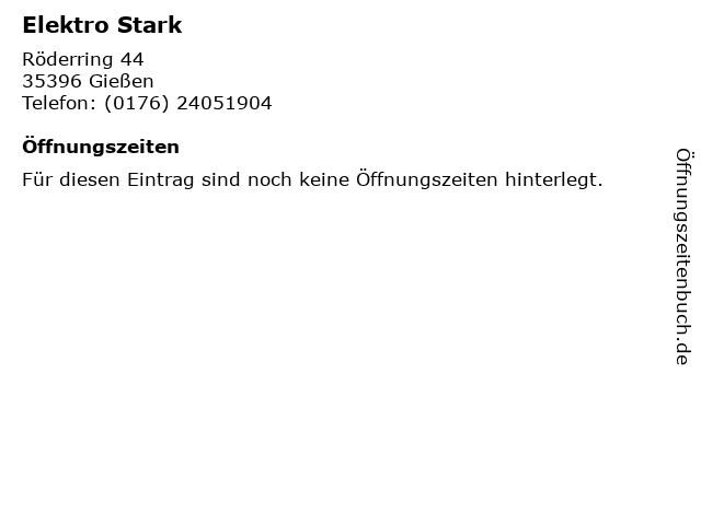 | Öffnungszeiten Elektro Stark in Gießen anzeigen | |