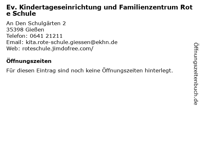 | Ev. Kindertageseinrichtung und Familienzentrum Rote Schule anrufen | |