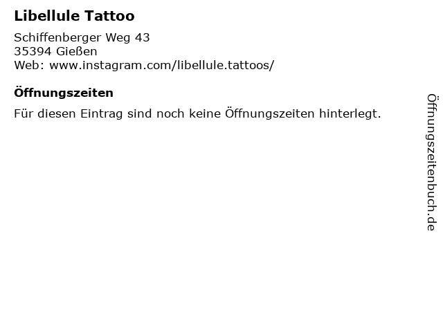| Öffnungszeiten Libellule Tattoo in Gießen anzeigen | |
