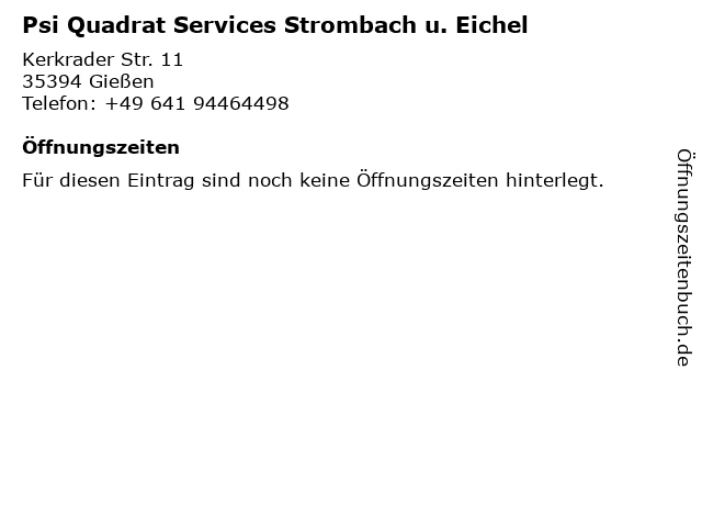 | Psi Quadrat Services Strombach u. Eichel anrufen | |
