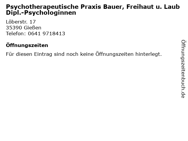 | Psychotherapeutische Praxis Bauer, Freihaut u. Laub Dipl.-Psychologinnen anrufen | |