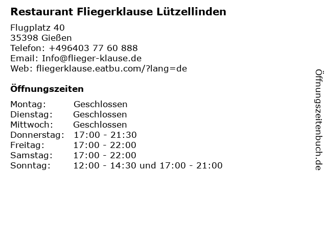 Branchen & Suchbegriffe zu Restaurant Fliegerklause Lützellinden:essen, fliegerklause, getränke, kaffee, lützellinden, restaurant |