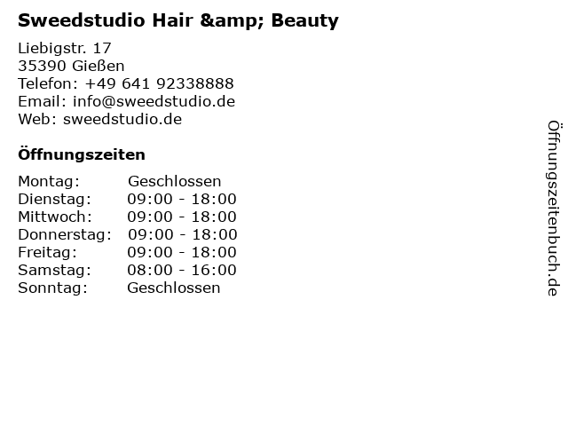 | Adresse Sweedstudio Hair & Beauty in Gießen anzeigen |