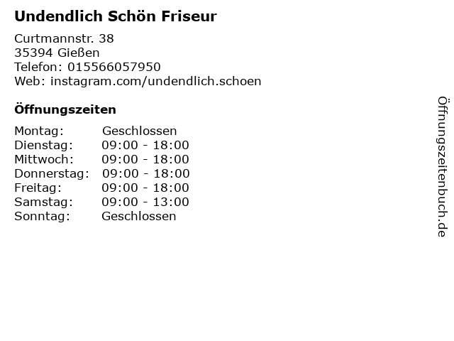 | Öffnungszeiten Undendlich Schön Friseur in Gießen anzeigen | |