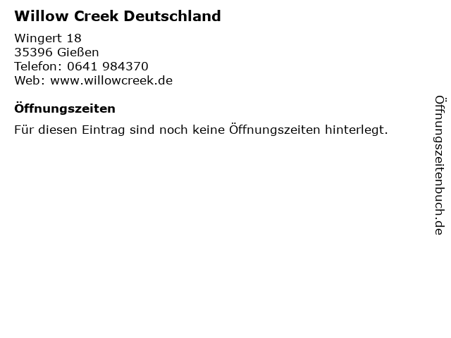 | Öffnungszeiten Willow Creek Deutschland in Gießen anzeigen | |