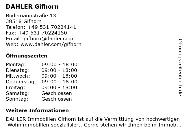 | Öffnungszeiten DAHLER Gifhorn in Gifhorn anzeigen | |
