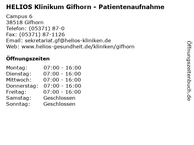 Öffnungszeiten HELIOS Klinikum Gifhorn - Patientenaufnahme