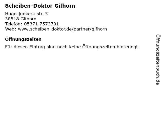 | Öffnungszeiten Scheiben-Doktor Gifhorn in Gifhorn anzeigen | |