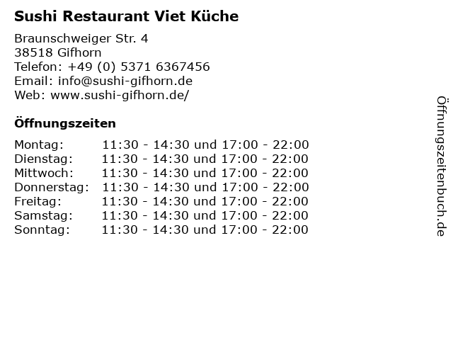 | Sonntag | 11:30-14:30 und 17:00-22:00 |