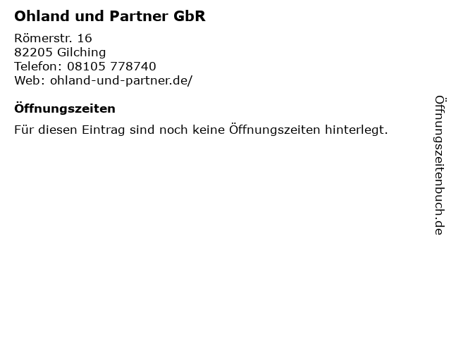 | Öffnungszeiten Ohland und Partner GbR in Gilching anzeigen | |