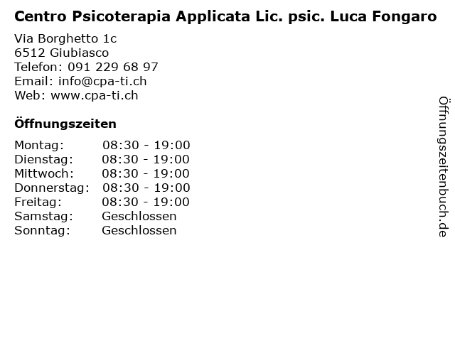 Branchen & Suchbegriffe zu Centro Psicoterapia Applicata Lic. psic. Luca Fongaro:applicata, centro, fongaro, lic., luca, psic., psicoterapia, psychologie, psychologische beratung |