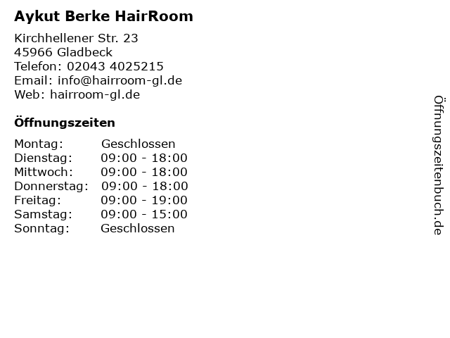 | Telefonnummer Aykut Berke HairRoom in Gladbeck (02043 4025215) anrufen | |