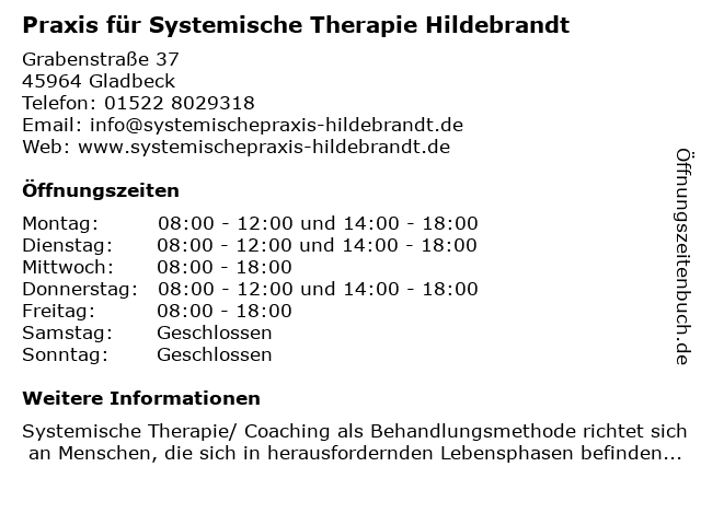Branchen & Suchbegriffe zu Praxis für Systemische Therapie Hildebrandt:eheberatung, hildebrandt, praxis, psychologische beratung, psychotherapie, systemische, therapie |