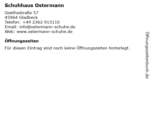 | Öffnungszeiten Schuhhaus Ostermann in Gladbeck anzeigen | |