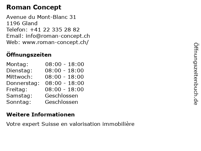| Öffnungszeiten Roman Concept in Gland anzeigen | |