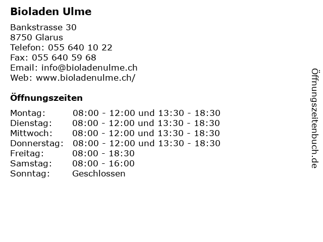 | Öffnungszeiten Bioladen Ulme in Glarus anzeigen | |