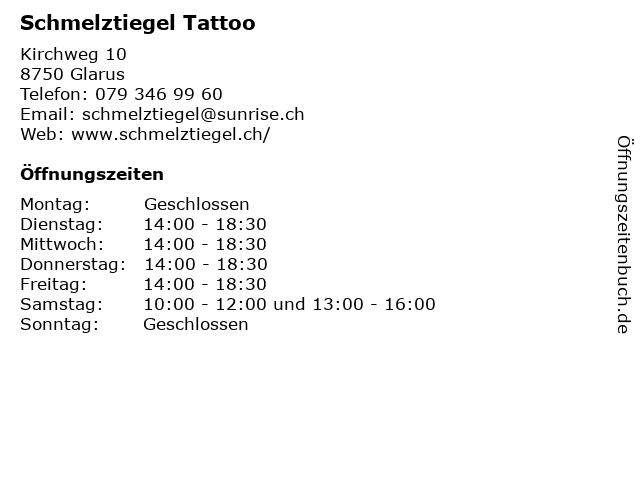 | Öffnungszeiten Schmelztiegel Tattoo in Glarus anzeigen | |