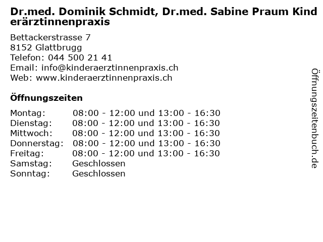 | Freitag | 08:00-12:00 und 13:00-16:30 |