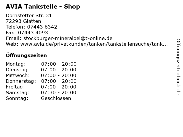 | Öffnungszeiten AVIA Tankstelle - Shop in Glatten anzeigen | |