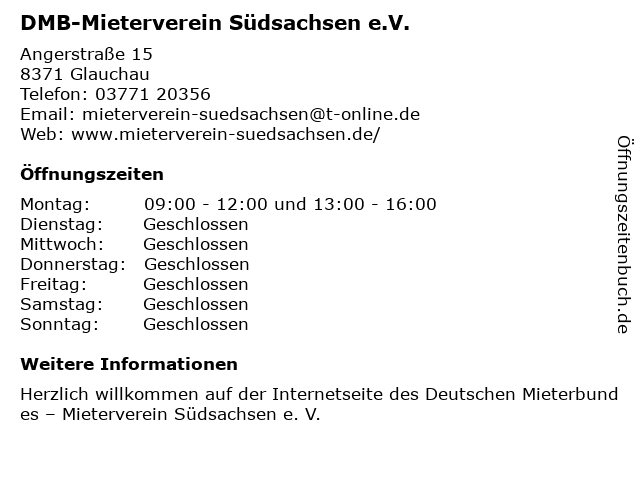 Branchen & Suchbegriffe zu DMB-Mieterverein Südsachsen e.V.:dmb, e.v., mieterverein, südsachsen |