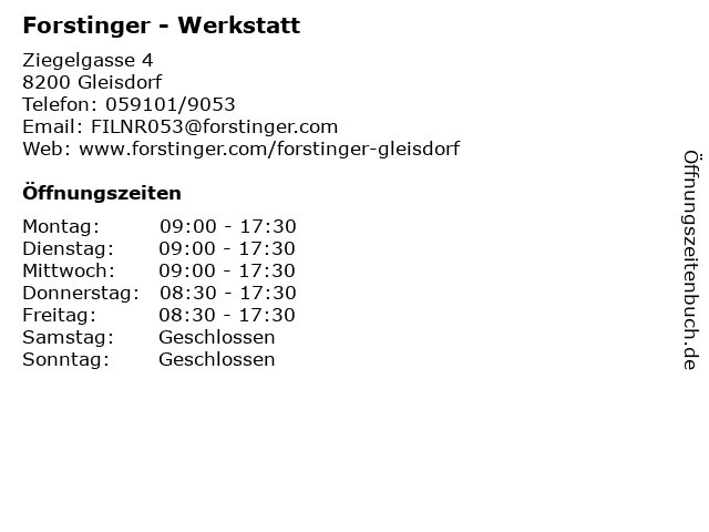 | Öffnungszeiten Forstinger - Werkstatt in Gleisdorf anzeigen | |