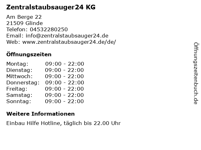 | Öffnungszeiten Zentralstaubsauger24 KG in Glinde anzeigen | |