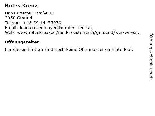 | Öffnungszeiten Rotes Kreuz in Gmünd anzeigen | |