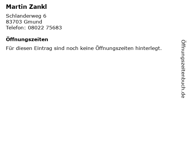 | Öffnungszeiten Martin Zankl in Gmund anzeigen | |
