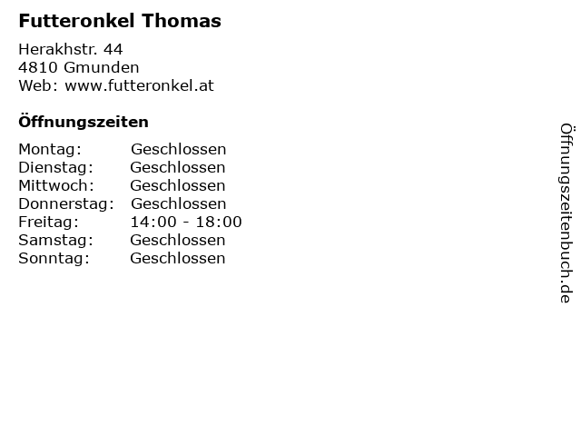 | Öffnungszeiten Futteronkel Thomas in Gmunden anzeigen | |