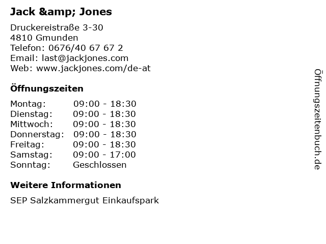 Öffnungszeiten Jack & Jones in Gmunden anzeigen | |