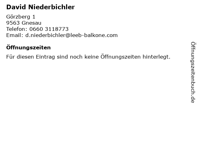 | Öffnungszeiten David Niederbichler in Gnesau anzeigen | |