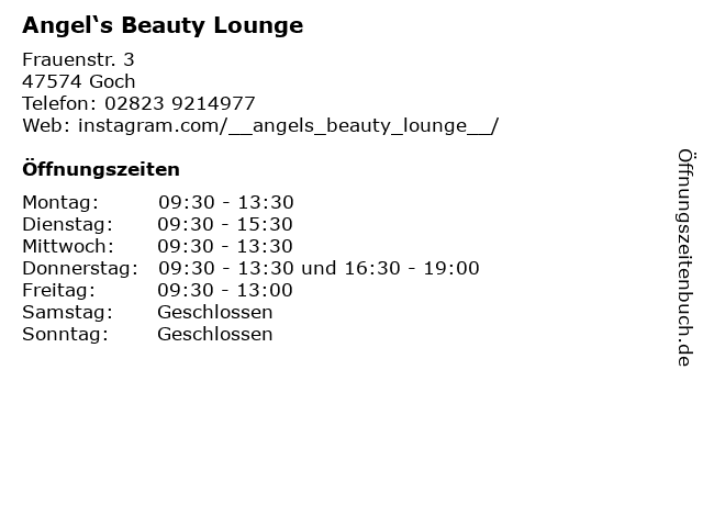 | Öffnungszeiten Angel‘s Beauty Lounge in Goch anzeigen | |