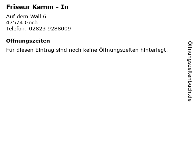 | Öffnungszeiten Friseur Kamm - In in Goch anzeigen | |