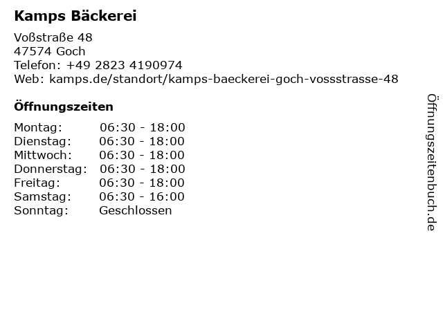 | Öffnungszeiten Kamps Bäckerei in Goch anzeigen | |
