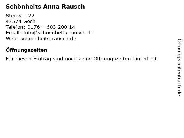 | Öffnungszeiten Schönheits Anna Rausch in Goch anzeigen | |