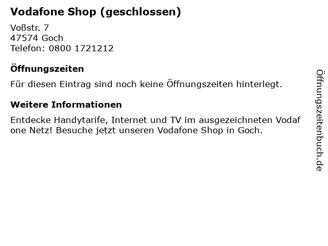 | Öffnungszeiten Vodafone Shop (geschlossen) in Goch anzeigen | |