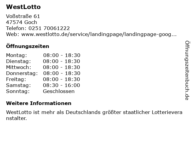 Öffnungszeiten WestLotto in Goch anzeigen