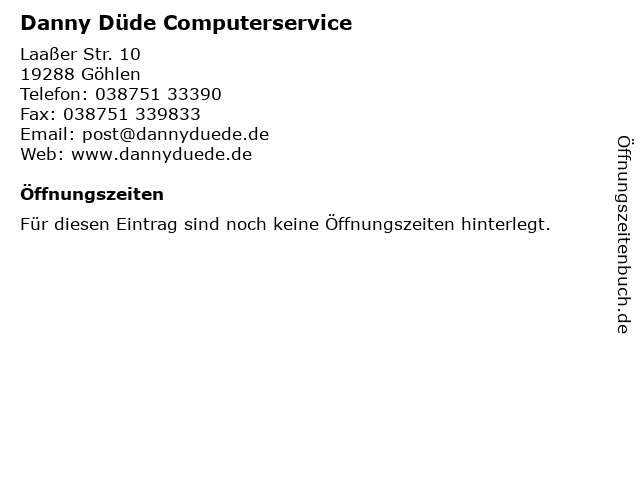 | Öffnungszeiten Danny Düde Computerservice in Göhlen anzeigen | |