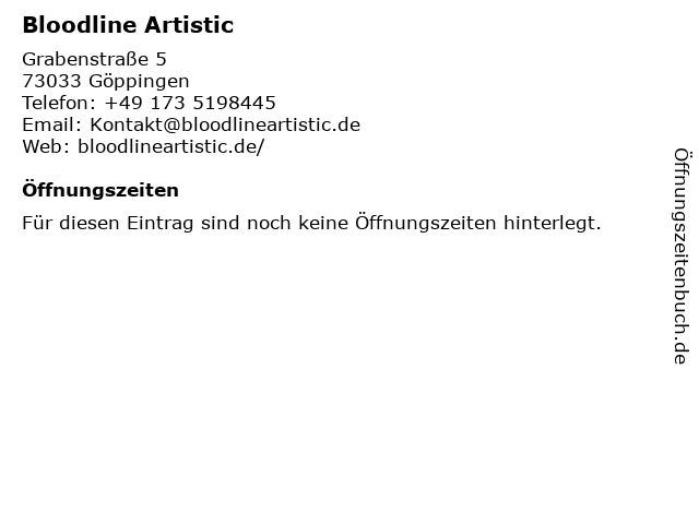 | Öffnungszeiten Bloodline Artistic in Göppingen anzeigen | |