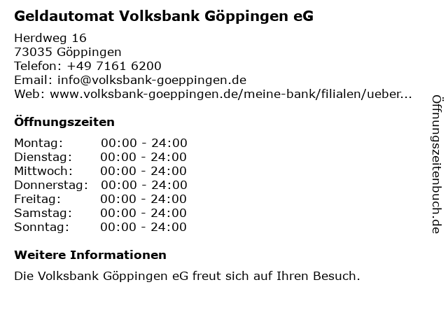 Öffnungszeiten Geldautomat Volksbank Göppingen eG