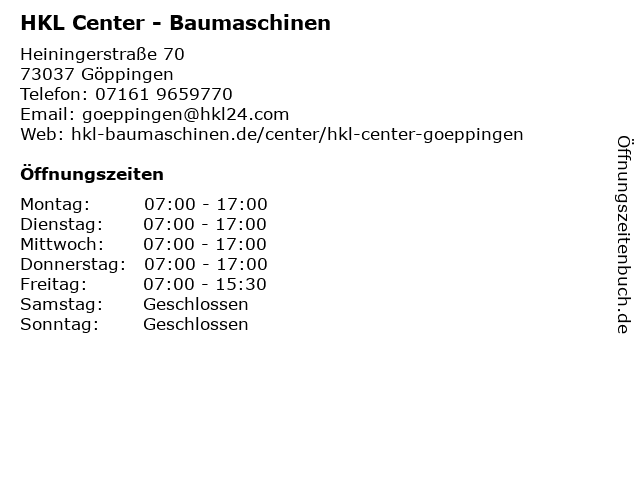 | Öffnungszeiten HKL Center - Baumaschinen in Göppingen anzeigen | |