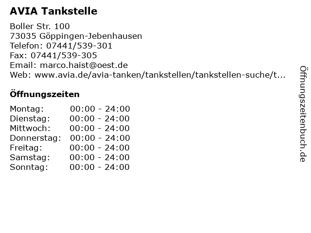 AVIA Tankstelle in Göppingen-Jebenhausen | Telefonnummer, Öffnungszeiten und Adresse