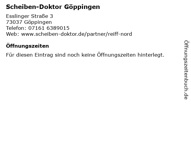 | Öffnungszeiten Scheiben-Doktor Göppingen in Göppingen anzeigen | |
