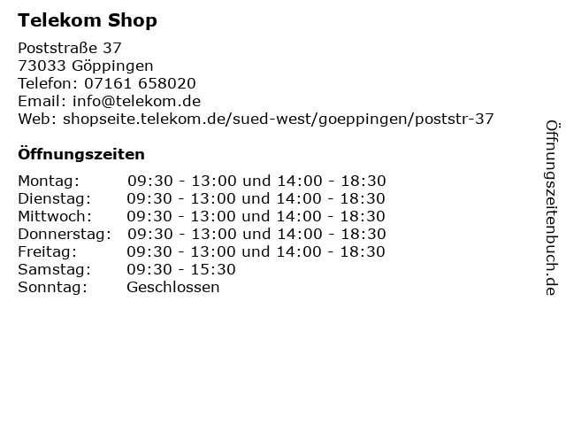 | Öffnungszeiten Telekom Shop in Göppingen anzeigen | |