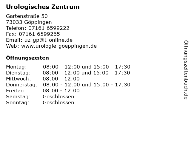 | Öffnungszeiten Urologisches Zentrum in Göppingen anzeigen | |