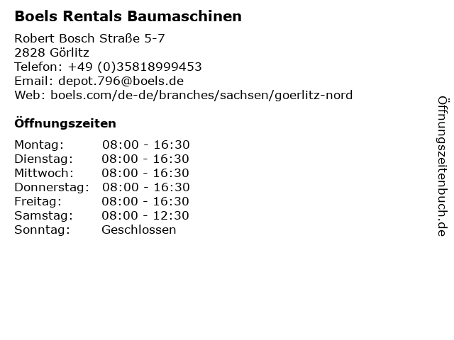 | Öffnungszeiten Boels Rentals Baumaschinen in Görlitz anzeigen | |