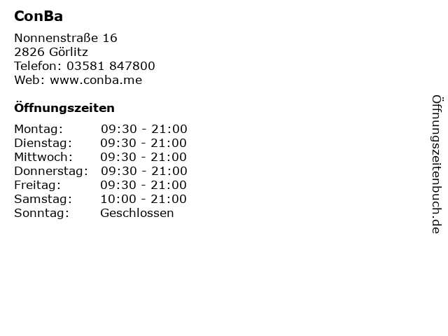 | Öffnungszeiten ConBa in Görlitz anzeigen | |